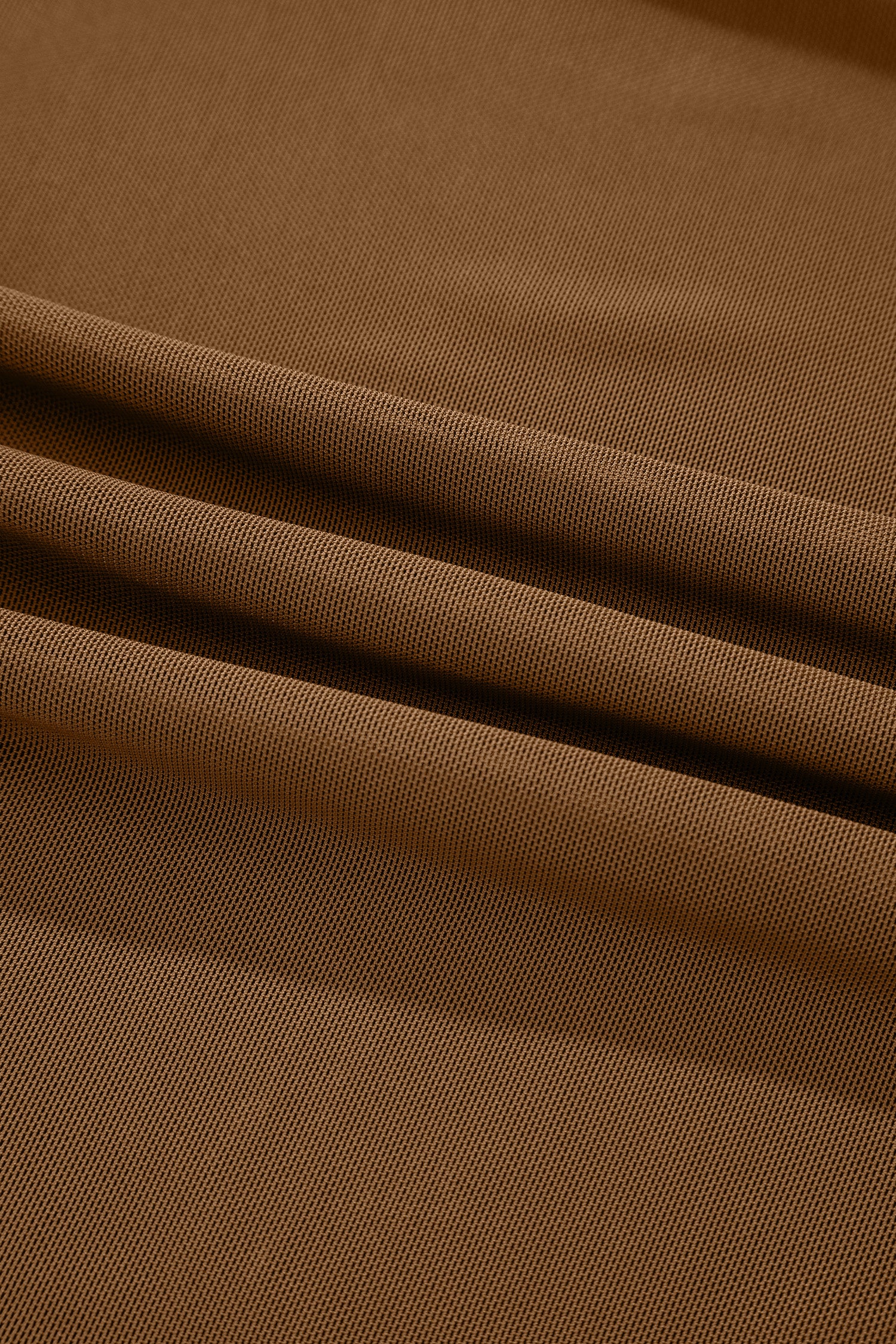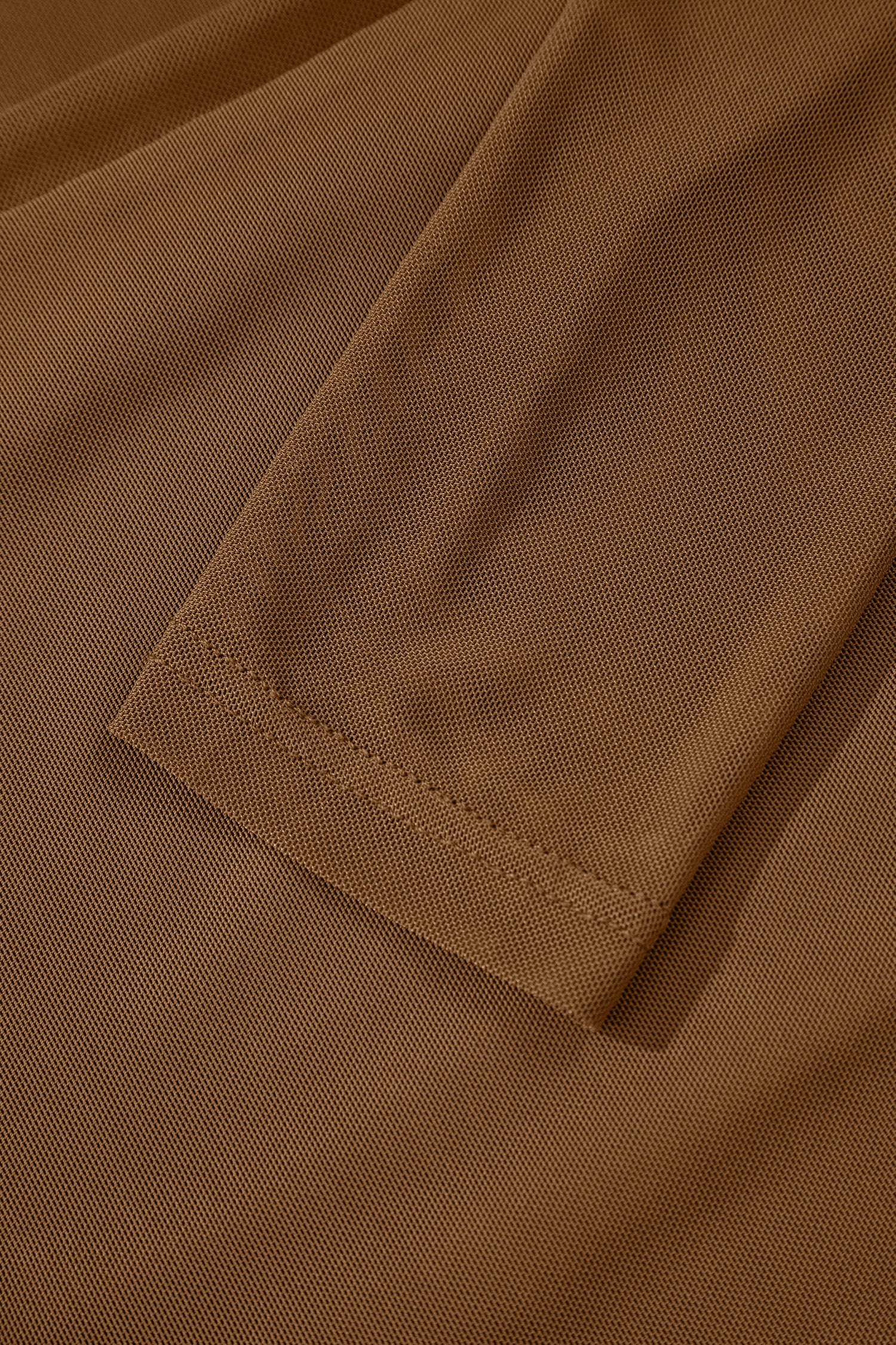 Coffee Sheer Mesh Patchwork High Neck Long Sleeve Top