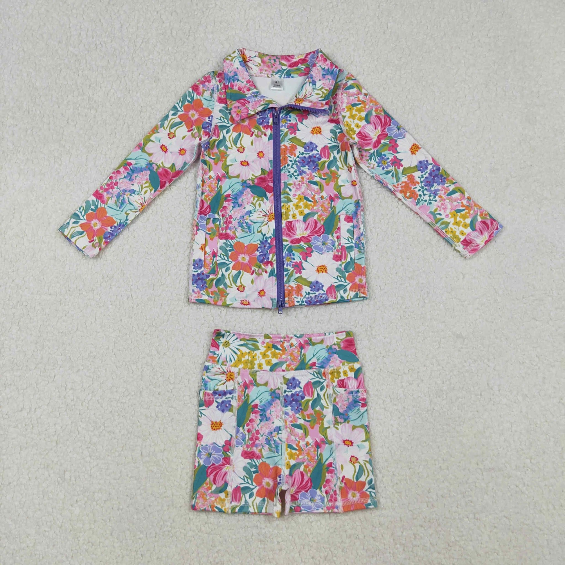 Multicolor Floral Biker Shorts Set